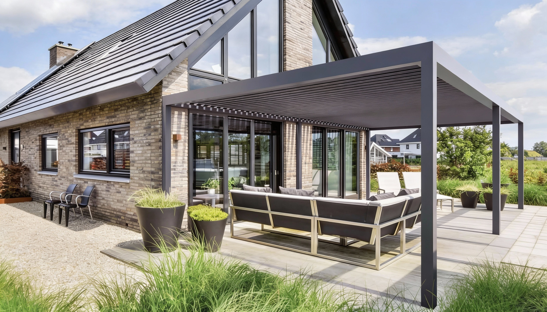 Díky extrudovaným hliníkovým profilům s vysokou pevností a sloupy o průřezu až 120 mm umíme zaručit nejen perfektní stabilitu, ale také jedny z největších maximálních rozměrů na trhu s pergolami.